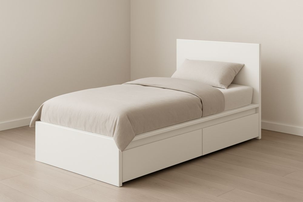 Lit simple en bois avec rangement 200x90×85 cm Blanc